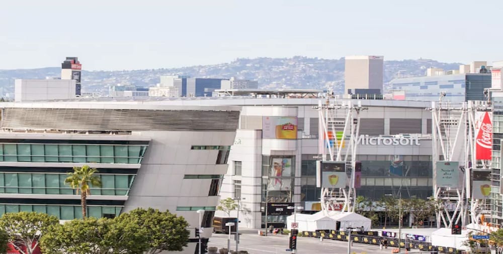 Wake up to views of downtown los angeles from the windows of your hotel suite.